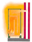 Die erhitzte Luft zirkuliert im Kachelofensystem und erwärmt auf diese Weise Wandflächen, Bänke oder sogar Fußböden.